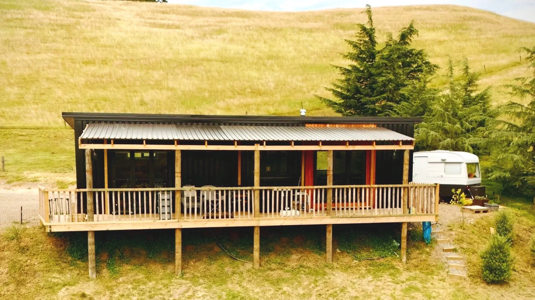 40m2 floor space, fireplace, redwood slab benches throughout, herringbone flooring, butler sink, plenty of room for second loft. Price approx $120,000 +GST